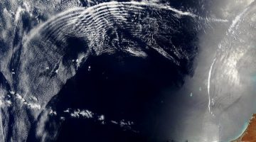 Onde gravitazionali atmosferiche plasmano la forma delle nubi sopra all’Oceano Indiano.|JACQUES DESCLOITRES, … Leggi tutto ONDE GRAVITAZIONALI ATMOSFERICHE: CHE COSA SONO?