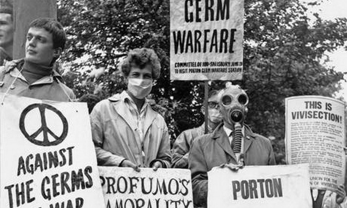 1963 Manifestanti chiedono la fine dei ‘test’ a Porton Down (Getty) Traduzione …