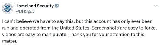 +Alcuni utenti hanno protestato contro la loro identificazione geografica o aggiunto contesto alla loro apparente posizione. L’account @1776General_, che si definisce “Costituzionalista, Patriota , Etnicamente Americano” ma trovato “basato in Turchia”, ha risposto con un post: “Lavoro in business internazionale. Al momento sto lavorando in Turchia per un contratto.”Sorprendentemente, persino il Dipartimento della Sicurezza Interna USA ha dovuto twittare una rassicurazione che è, in effetti, americano, dopo che screenshot apparentemente manipolati circolavano suggerendo che l’account fosse basato in un paese straniero.