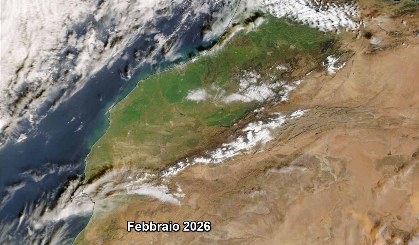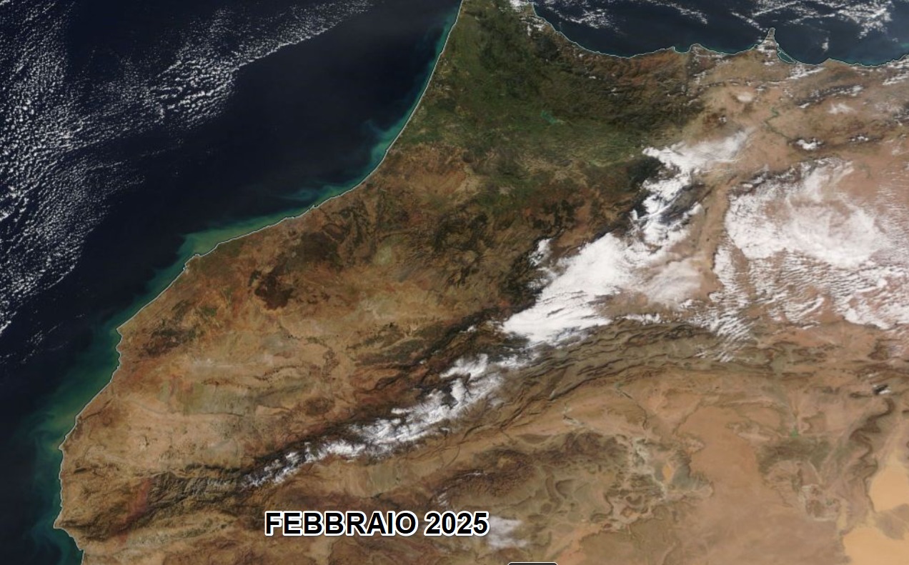 IL Marocco archivia la siccità con le ingenti piogge dei giorni scorsi: confrontando le immagini satellitari di Febbraio 2025 con quelli attuali, vi sono aree molto più verdi FONTE CENTROMETEO