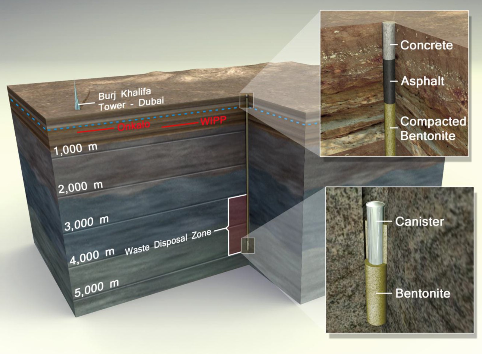 Ogni capsula è un cilindro d’acciaio resistente alla corrosione, largo tra 23 e 33 centimetri, lungo circa 4 metri. Un “bucatino” ripieno, per usare una metafora culinaria. Il foro viene poi sigillato con strati di bentonite, cemento e roccia frantumata. L’isolamento non dipende solo dalle barriere ingegneristiche, ma dalla profondità stessa: a quelle quote, l’acqua è vecchia milioni di anni, i gradienti di densità rallentano qualsiasi movimento verticale, e in generale le condizioni limitano la mobilità dei radionuclidi.
