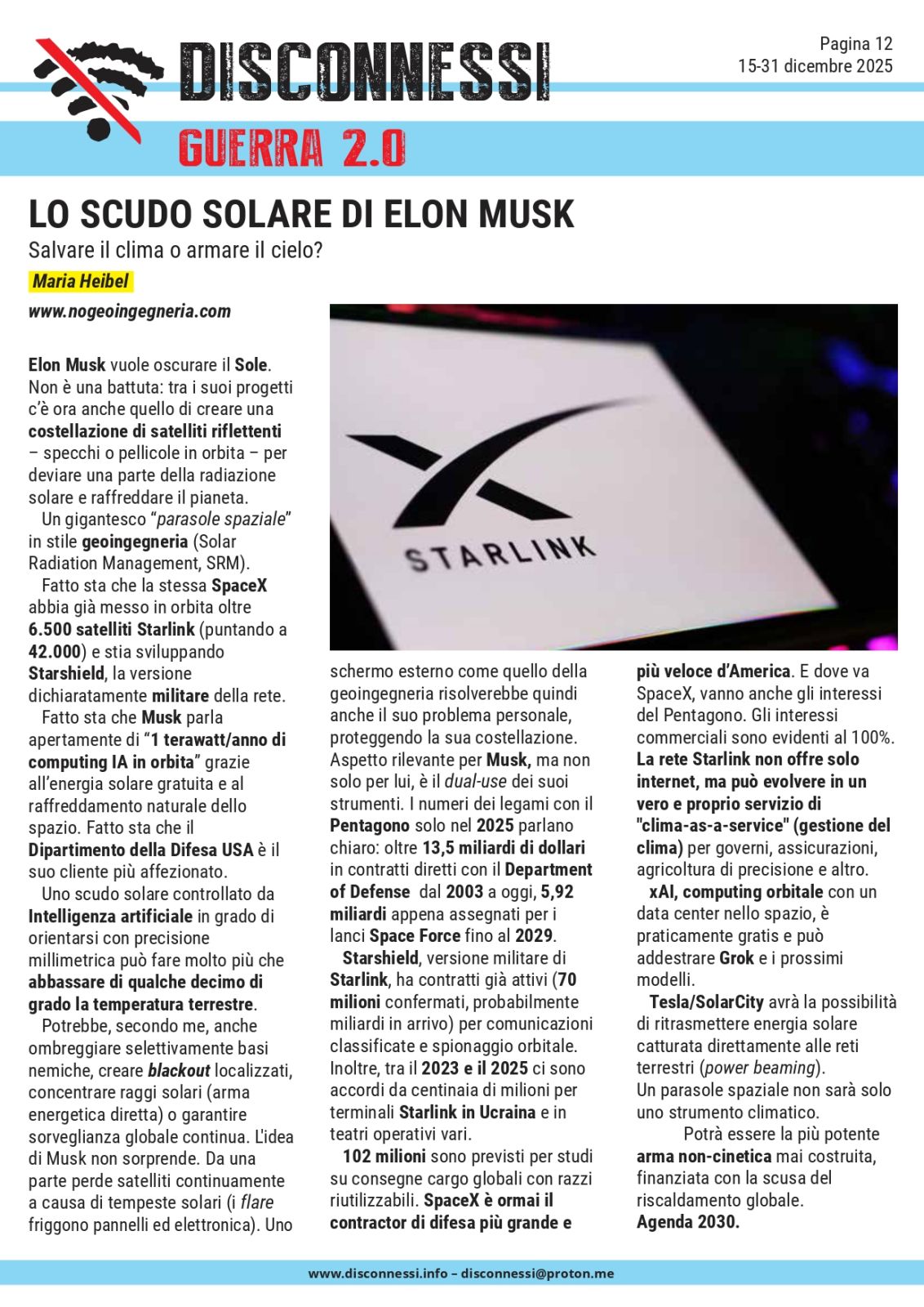 Elon Musk (SpaceX) ha dichiarato che scaleranno i satelliti Starlink V3 per creare data center in orbita, sempre alimentati da energia solare spaziale illimitata e con raffreddamento naturale nel vuoto. Musk ha detto che entro pochi anni potrebbe essere più economico computare nello spazio che sulla Terra.