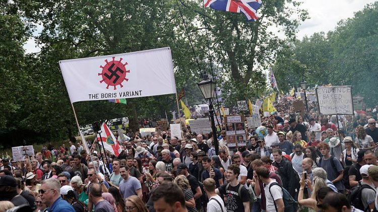 Decine di migliaia di manifestanti anti-lockdown oggi nel centro di Londra chiedono …