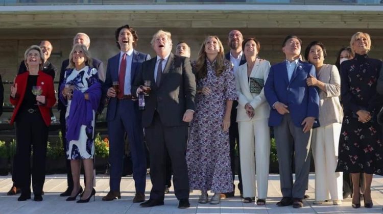 Una foto che riprende i partecipanti del G7 di Carbis Bay in Cornovaglia …