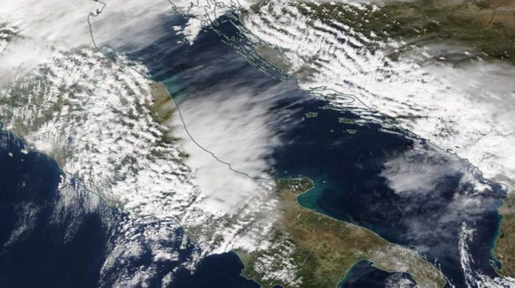 Onde gravitazionali atmosferiche plasmano la forma delle nubi sopra all’Oceano Indiano.|JACQUES DESCLOITRES, …