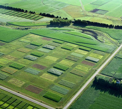 Un esperimento sul terreno bioenergetico nel Wisconsin sta valutando come l’erba da pascolo, il Miscanthus, le stoppie di mais, i pioppi e le praterie selvatiche si sovrappongono l’uno contro l’altro. (Credit:GREGG SANFORD/GREAT LAKES BIOENERGY RESEARCH CENTER/FLICKR/CC BY-NC-ND 2.0)