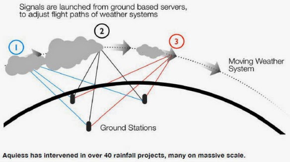 Through further studies, atmospheric researchers developed a theory that identified macro‐scale weather chaos as ‘the key’ to influencing weather. During late 1990’s an independent research team in Australia stumbled on an ‘atmospheric mechanism’ whilst exploring origins of this theory (link). Experimental trials revealed that “small amounts of electromagnetic energy, applied intelligently,” could force change into weather, based on atmospheric sine wave patterns. This research culminated in the development of an atmospheric resonance technology, represented by Aquiess International (aquiess).
